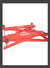 Podnośniki te są wyposażone w dodatkowy pomocniczy podnośnik nożycowy, podprogowy, który jest zabudowany w platformach najazdowych. Tor jezdny platform wyposażony jest ponadto w płyty luzujące, zagłębienia pod obrotnice i dodatkowe oświetlenie wzdłuż najazdów ( opcja ). Rozbudowany elektroniczny system nadzorowania synchronicznej pracy podnoszenia i opuszczania platform oraz zębatkowy mechanizm blokowania podnośnika głównego i pomocniczego w różnych położeniach sprawia, że doskonale nadaje się on do współpracy urządzeniami do sprawdzania i ustawiania geometrii.
